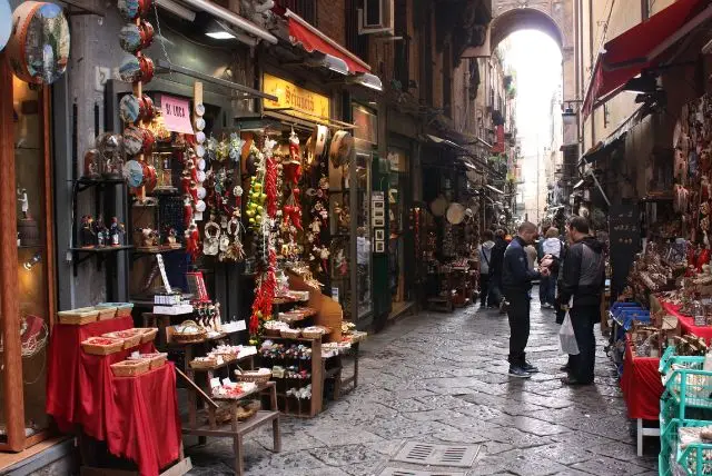 לאורך ספאקנאפולי (Spaccanapoli) ניתן למצוא רצף של חנויות קטנות, דוכנים משפחתיים ובתי מלאכה מסורתיים. זהו מסחר מקומי אמיתי, כזה שלא נשען על רשתות גדולות אלא על עסקים שעוברים מדור לדור. כל חנות מציעה משהו אחר – ממוצרי מזון מקומיים ועד פריטים בעבודת יד עם אופי ייחודי. התחושה היא של שוק פתוח שמתפרש לאורך הרחוב כולו ולא מוגבל למתחם אחד. מדובר בעולם מגוון שבו כל כמה מטרים נפתחת חוויה חדשה.
